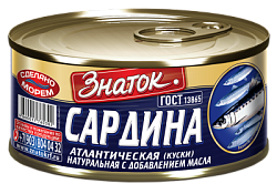 ЗНАТОК(р) Сардина натуральная с добавлением масла ж/б ключ 240 гр х 48