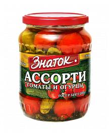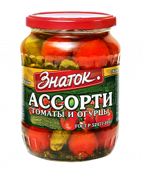 Ассорти из овощей "Знаток" - нежные, хорошо вызревшие помидоры и хрустящие огурчики, залитые вкусным маринадом. Секрет вкуса маринованного ассорти - сочетание огурцов и помидоров, которые дополняют друг друга. В банки попадают только отборные овощи, достигнувшие необходимой стадии зрелости. Пройдя этапы тщательного отбора и термической обработки, овощи превращаются в оригинальную закуску и дополнение к основным блюдам.