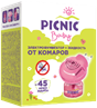 Комплект разработан специально для уничтожения кровососущих насекомых в доме, где есть ребенок. Он состоит из универсального электрофумигатора и максимально безопасной, разрешенной к применению в присутствии детей, жидкости от комаров. Жидкость надежно и бережно защитит спокойный сон и отдых ребенка на протяжении 45 ночей. 1. Активная и современная действующая формула. 2. В состав входят современные нетоксичные вещества и растительные экстракты. 3. Специально для детей от 1 года. 4. Универсальный прибор – подходит для жидкости и пластин. 5. Прибор имеет световой индикатор, снабжен поворотной вилкой. 6. Время действия: до 45 ночей работы. 7. Полное уничтожение комаров достигается за 1 час. Picnic – средства для защиты от комаров на природе и дома, созданные с использованием натуральных экстрактов и безопасных действующих веществ, по доступной цене. Picnic Baby – безопасная защита от насекомых для детей от одного года. В состав входят безопасные действующие вещества: современное ДВ – IR3535, экстракт алоэ вера, экстракт ромашки. Где бы вы ни находились: на прогулке или даче, в отпуске или за городом, доверьте Picnic Baby самое главное! Срок хранения: 1 825 суток. Условия хранения: Температура хранения 18-21°С Сухое, проветриваемое помещение, влажность 20-60% Исключить попадание прямого солнечного света.