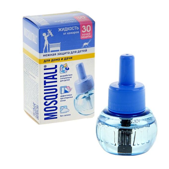 Жидкость от комаров Mosquitall "Нежная защита для детей" 30 ночей разработана с учетом особенностей детского организма. Она максимально безопасна и разрешена к использованию в присутствии детей благодаря четко выверенной концентрации действующего вещества последнего поколения. Жидкость эффективно уничтожает кровососущих насекомых внутри помещения и надежно защищает ребенка от их укусов во время ночного сна и отдыха.
