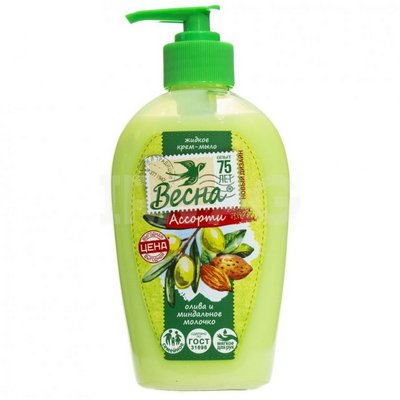 Главная/КОСМЕТИКА / 14.8 СРЕДСТВА ДЛЯ ВАННОЙ / 14.8.2. МЫЛО ЖИДКОЕ/14.8.2.2 МЫЛО ВЗРОСЛОЕ/Весна Мыло жид. АССОРТИ Олива и миндальное молочко 280гр х 15 (5097)