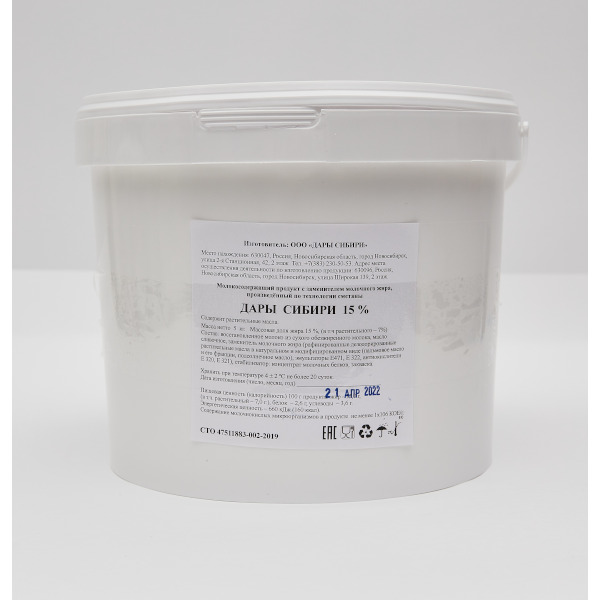 Молокосодержащий продукт с змж произведённый по тех-ии СМЕТАНЫ 15% 5 кг пл/ведро Дары Сибири (30сут)