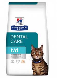 Сухой корм для кошек Hill's Prescription Diet t/d - диетический корм с клинически доказанным эффектом: уменьшает образование зубного налета, пятен и зубного камня и очищает зубы до линии десны.