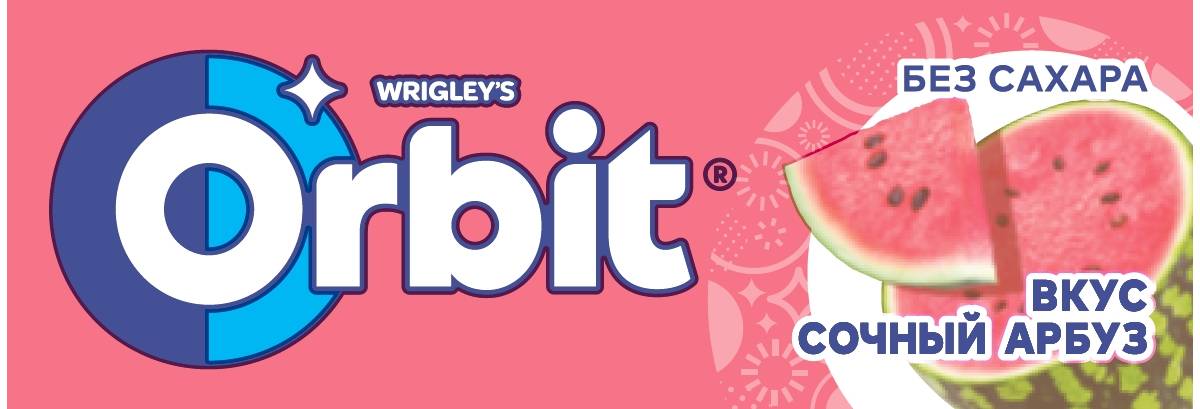 Жевательная резинка Orbit "Сочный арбуз" без сахара способствует поддержанию здоровья зубов: удаляет остатки пищи, способствует уменьшению зубного налета, нейтрализует вредные кислоты, усиливает процесс реминерализации эмали.