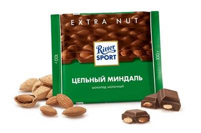 Состав: сахар, ядро миндаля обжаренное, масло какао1, какао тертое1, сухое цельное молоко, лактоза, сухое обезжиренное молоко, молочный жир, эмульгатор (соевый лецитин). Возможно наличие следов арахиса, орехов, семян кунжута, злаков, содержащих глютен и яиц. Содержание в шоколадной массе: общего сухого остатка какао - не менее 30 %, сухого обезжиренного остатка какао - не менее 5 %, сухого обезжиренного остатка молока - не менее 18 %, молочного жира - не менее 5 %. Содержание какао-продуктов в шоколадной массе - не менее 30 %. Пищевая ценность на 100 г: белки - 10 г, углеводы - 45 г, жиры - 37 г, в том числе насыщенные жирные кислоты - 14 г, в том числе трансизомеры ненасыщенных жирных кислот - 0,17 г, энергетическая ценность - 559 ккал/ 2327 кДж.