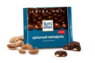 "Состав: сахар, какао тертое1, ядро миндаля обжаренное, масло какао1, молочный жир, эмульгатор (соевый лецитин). Возможно наличие следов арахиса, орехов, содержащих глютен злаков, молочных продуктов и яиц. Содержание какао-продуктов в шоколадной массе - не менее 50 %. Содержание в шоколадной массе: общего сухого остатка какао - не менее 50%, сухого обезжиренного остатка какао - не менее 18 %, сухого обезжиренного остатка молока - не менее 1 %, молочного жира - не менее 1 %.