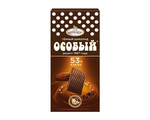 Темный шоколад "Особый", изготовленный по особому рецепту с добавлением соли, оттеняющий тонкий вкус шоколада. Лакомство послужит отличным дополнением к чаю, ими можно в будни и по праздникам порадовать родственников, друзей или коллег.