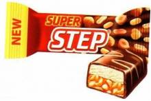 Двухслойная конфета славянка "Super Step", состоящая из мягкой нуги и карамели с арахисом, покрытая великолепной молочной глазурью.