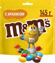 Драже M&Ms с арахисом и молочным шоколадом, покрытое хрустящей разноцветной глазурью, 145г Срок хранения: 217 суток. Условия хранения: Температура хранения 18-21°С Сухое, проветриваемое помещение, влажность 20-60% Исключить попадание прямого солнечного света.