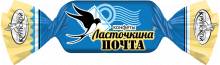 Ласточикна почта это знакомый с детства вкус шоколадной помадки с ореховым ароматом.Конфеты стандартной формы, покрыты щедрым слоем шоколадной глазури.Помадка очень нежная,с насыщенным вкусом какао и легким намеком на орех, в мер усладкая.Знакомая обертка с изображением ласточек.Изготовлено по ГОСТу.