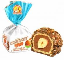 Вафельная конфета с нежной шоколадно-кремовой начинкой, с цельным фундуком, посыпанная дробленым арахисом и покрытая шоколадной глазурью.