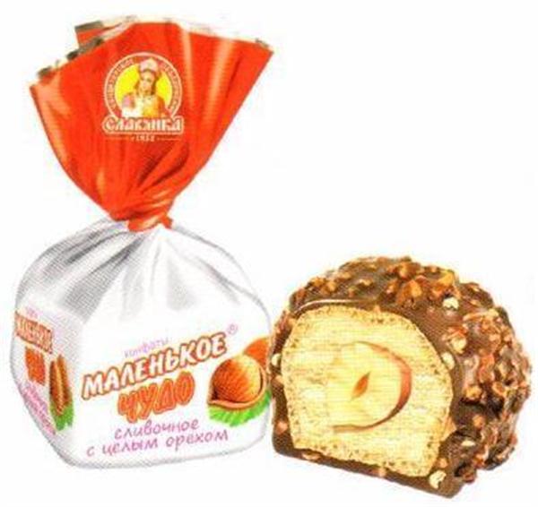 Вафельная конфета с нежной шоколадно-кремовой начинкой, целым орехом, посыпанная дробленым арахисом и покрытая шоколадной глазурью. Все ингридиенты сбалансированы и каждый дает свою изюминку. Лакомство послужит отличным дополнением к чаю, ими можно в будни и по праздникам порадовать родственников, друзей или коллег. Отлично подходят для детский праздников и дней рождений. Позвольте себе, полакомиться от души, и не забудьте поделиться с родными и близкими. Продается в прозрачных упаковках весом в 1 кг.