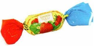 Карамель с начинкой. Оболочка тянутая, неокрашенная. Начинка молочная с ароматом клубники и сливок.