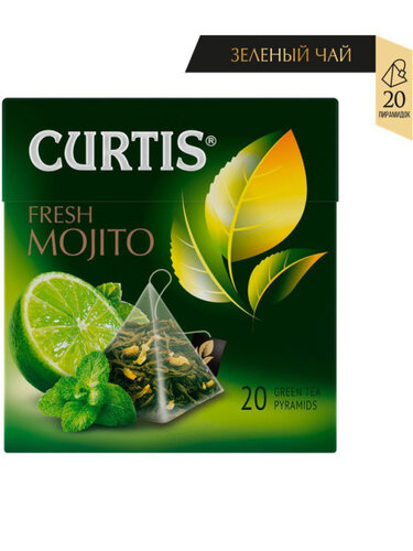Главная/ЧАЙ, КОФЕ, КАКАО / 5.4 ЧАЙ / 5.4.1 ЗЕЛЕНЫЙ ЧАЙ/Чай CURTIS 20п х 1,7гр Фреш Мохито зел. пирам. с/я х 12 MML (102210)