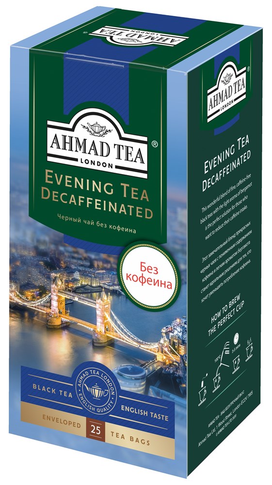 Главная/ЧАЙ, КОФЕ, КАКАО / 5.4 ЧАЙ / 5.4.2 ФРУКТОВЫЙ И ТРАВЯНОЙ ЧАЙ/Ахмад Чай черный пак.с.ярл.конверт (1.8гр х 25) х 12 Вечерний без кофеина (1581-1)