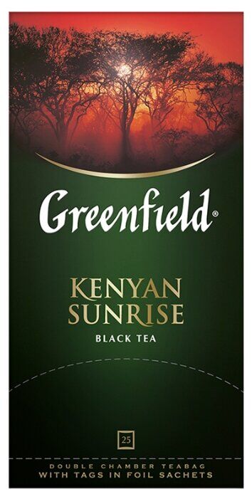 ОРИМИ Чай ГРИНФИЛД 25пакх2гр Кениан Санрайз черн.пак.1х10 с.я. 0489-10