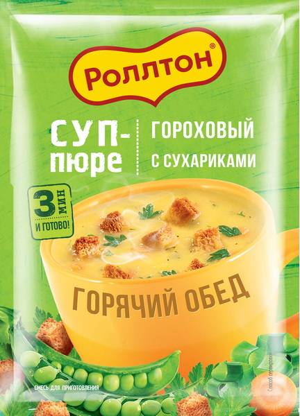 Кто сказал, что вкусно и быстро перекусить или дополнить свой обед невозможно? Гороховый суп-пюре с сухариками «Роллтон» в удобной упаковке — отлично подходит! Взял его с собой на работу, залил кипятком, несколько минут и нежный супчик с сухариками готов. Приятного аппетита!