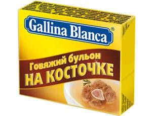 "Добавьте Говяжий бульон на косточке Gallina Blanca в конце варки вашего борща, щей, и их вкус преобразится, станет еще более насыщенным, наваристым, с ароматом долго томившегося бульона из мяса на косточке.