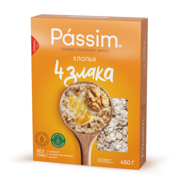 Пассим Хлопья кор. 0,45кг 4 злака 1х10